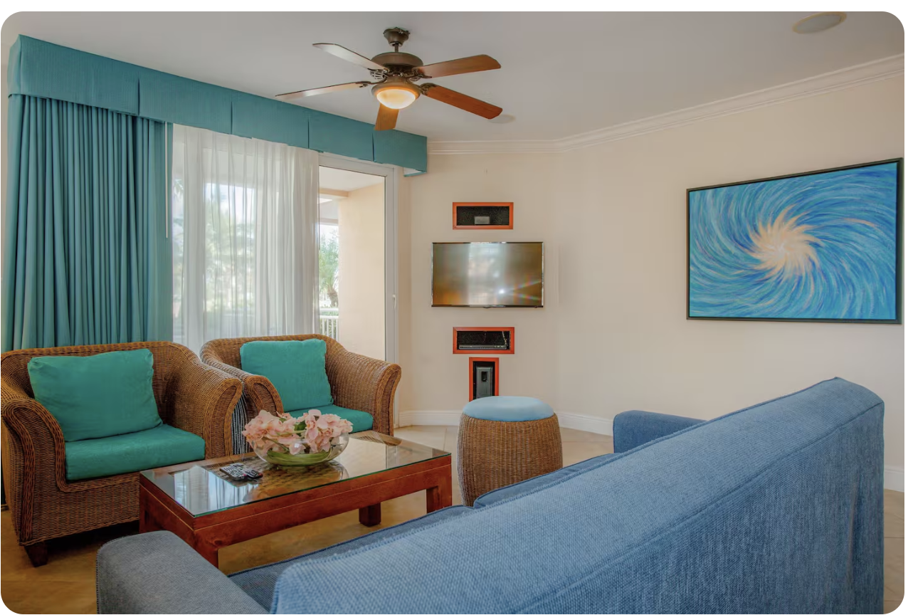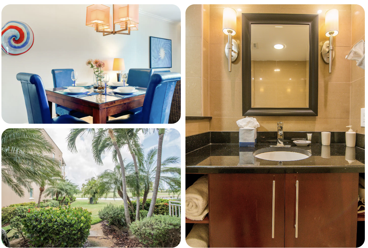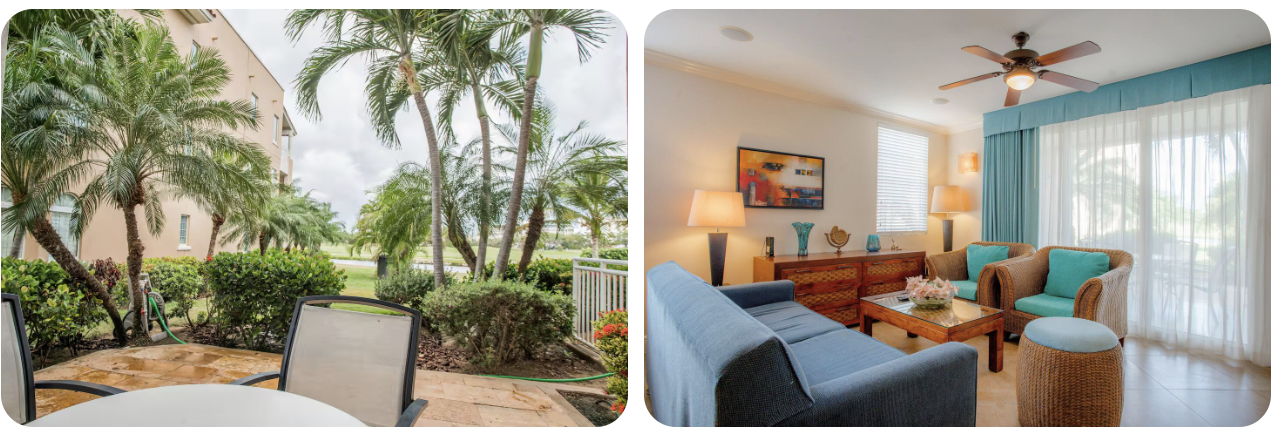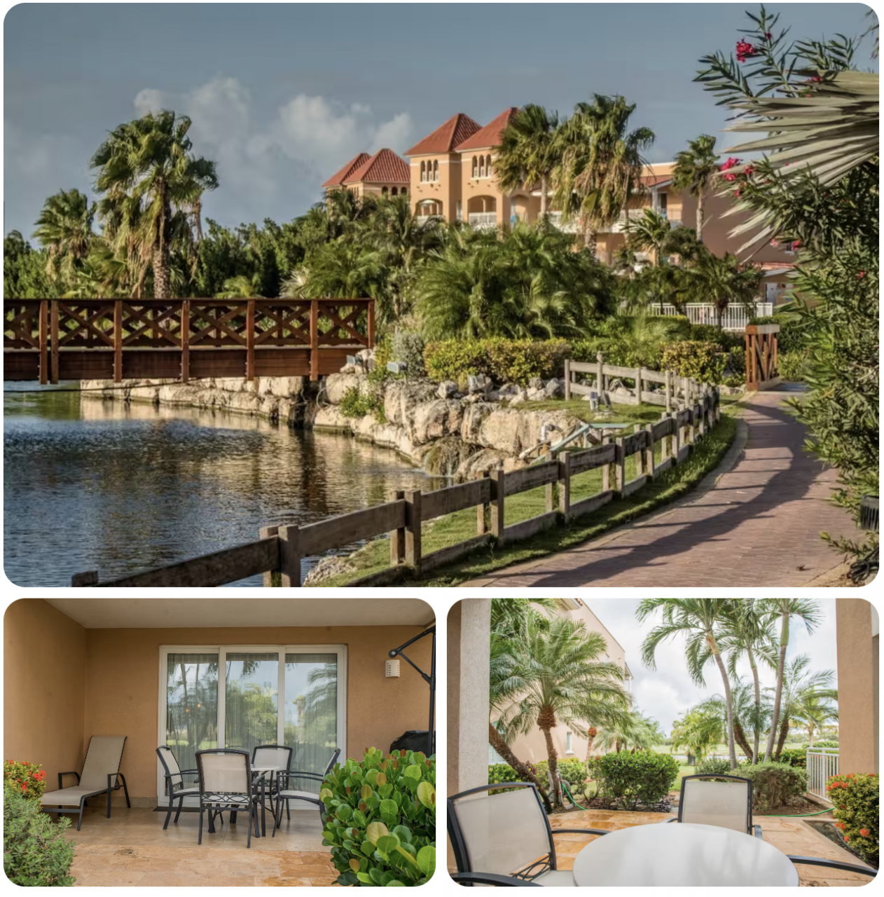 Beautiful one-bedroom unit with patio and BBQ, fully equipped kitchen, Sleeper/Sofa in the living area, and two full bathrooms on a peaceful resort on the Island of Aruba.