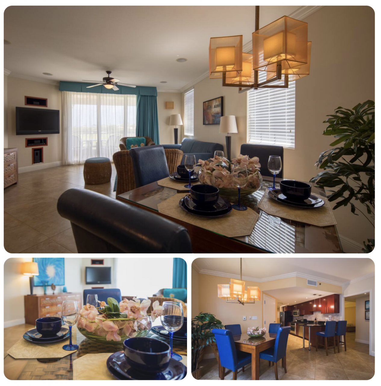 Two Bedroom: spacious apartment, fully furnished and stylishly appointed unit, fully equipped kitchen, and laundry. A/V package with 42″ flat screen and surround system. Living/dining quarters, two bedrooms with a king-size bed, 2.5 bathrooms, a walk-in closet, and a balcony.